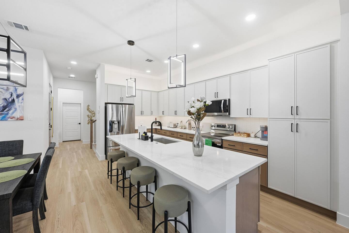 Your family will be close to everything when you stay at this centrally located, modern townhome—just a 5-minute walk to UT Southwestern. Enjoy a spacious layout, comfy beds, fast WiFi, and a fully equipped kitchen. Private 2-car garage parking included. Minutes to Downtown Dallas, dining, and top attractions—perfect for families and business travelers. a stylish experience at this centrally-located place.