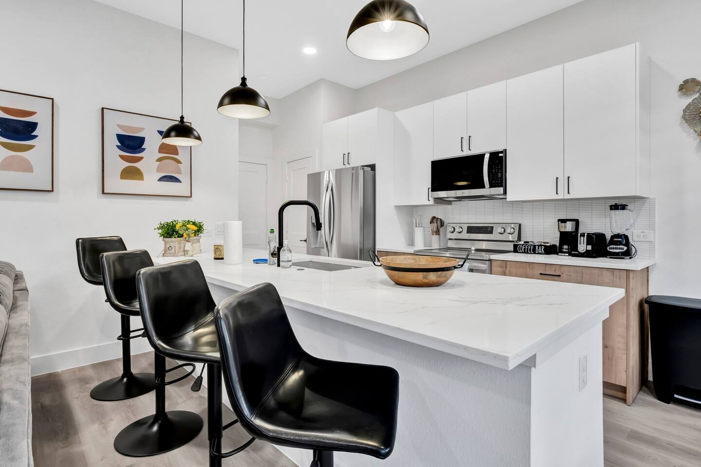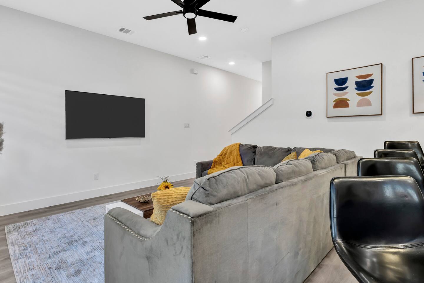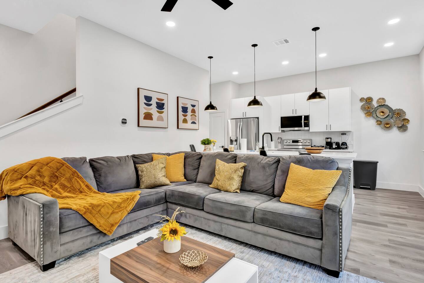 This modern 4-bedroom home offers comfort and style for groups up to 10 guests. Enjoy a fully equipped kitchen, spacious living room, private rooftop deck with seating, cozy backyard, 3 smart TVs, fast Wi-Fi, a dedicated laundry area, and multiple bathrooms including a convenient half bath near the kitchen. Perfect for family trips, business travelers, and city getaways just 5 minutes from Downtown Dallas.