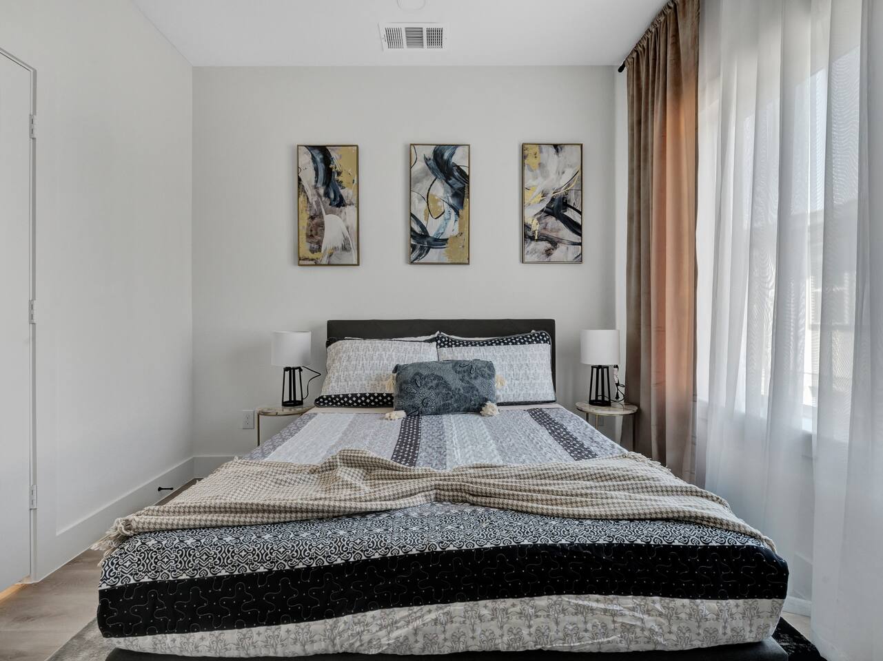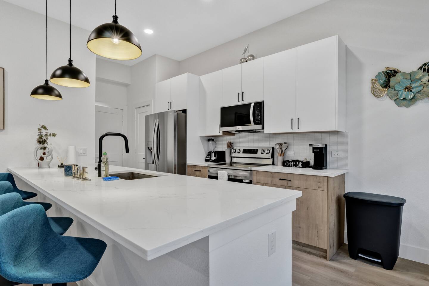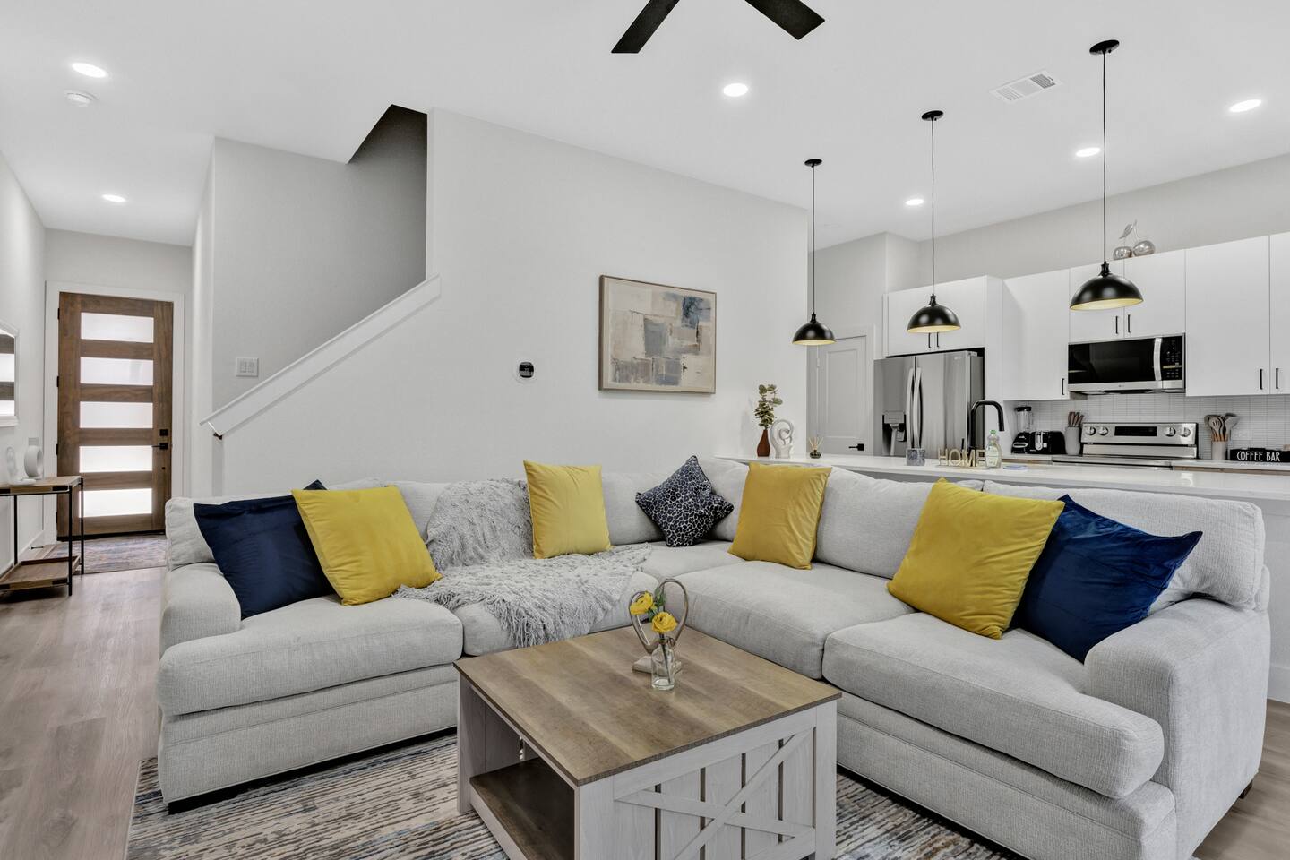 This Luxurious townhouse has 3 floors, a 2 car garage, a nice big backyard and a rooftop. There are 3 bedrooms (2 king size beds and 1 queen size bed) and 2.5 bathrooms.