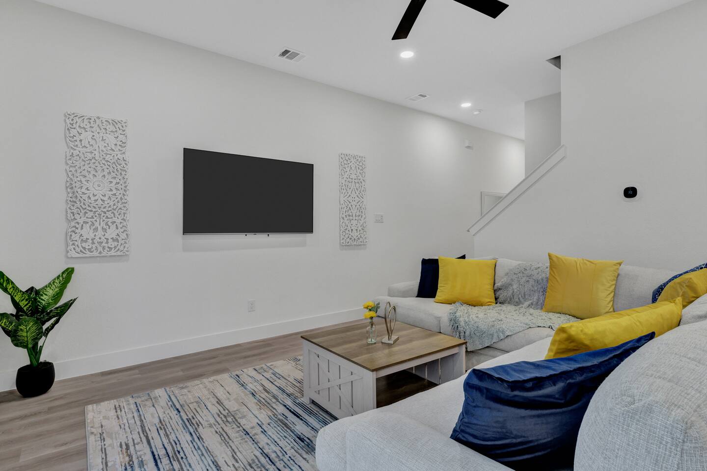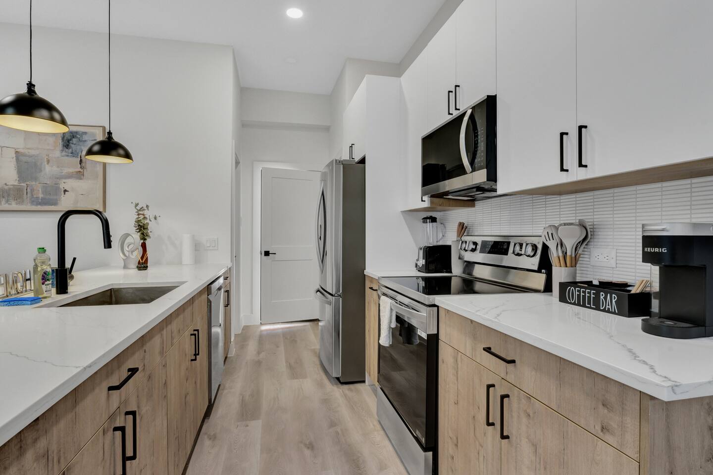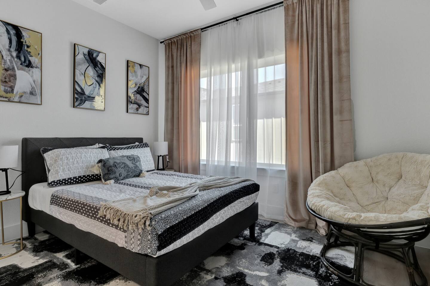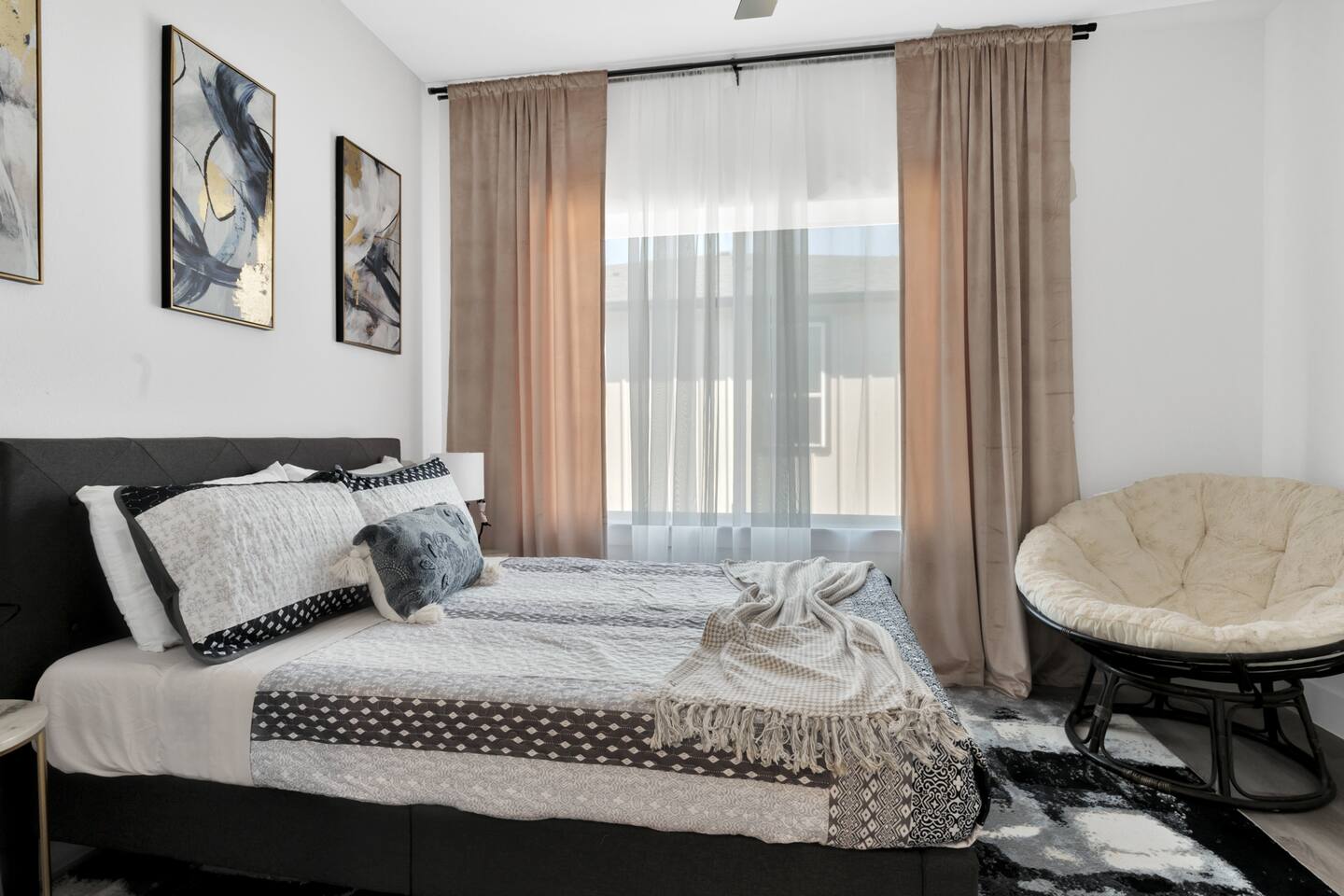 This Luxurious townhouse has 3 floors, a 2 car garage, a nice big backyard and a rooftop. There are 3 bedrooms (2 king size beds and 1 queen size bed) and 2.5 bathrooms.