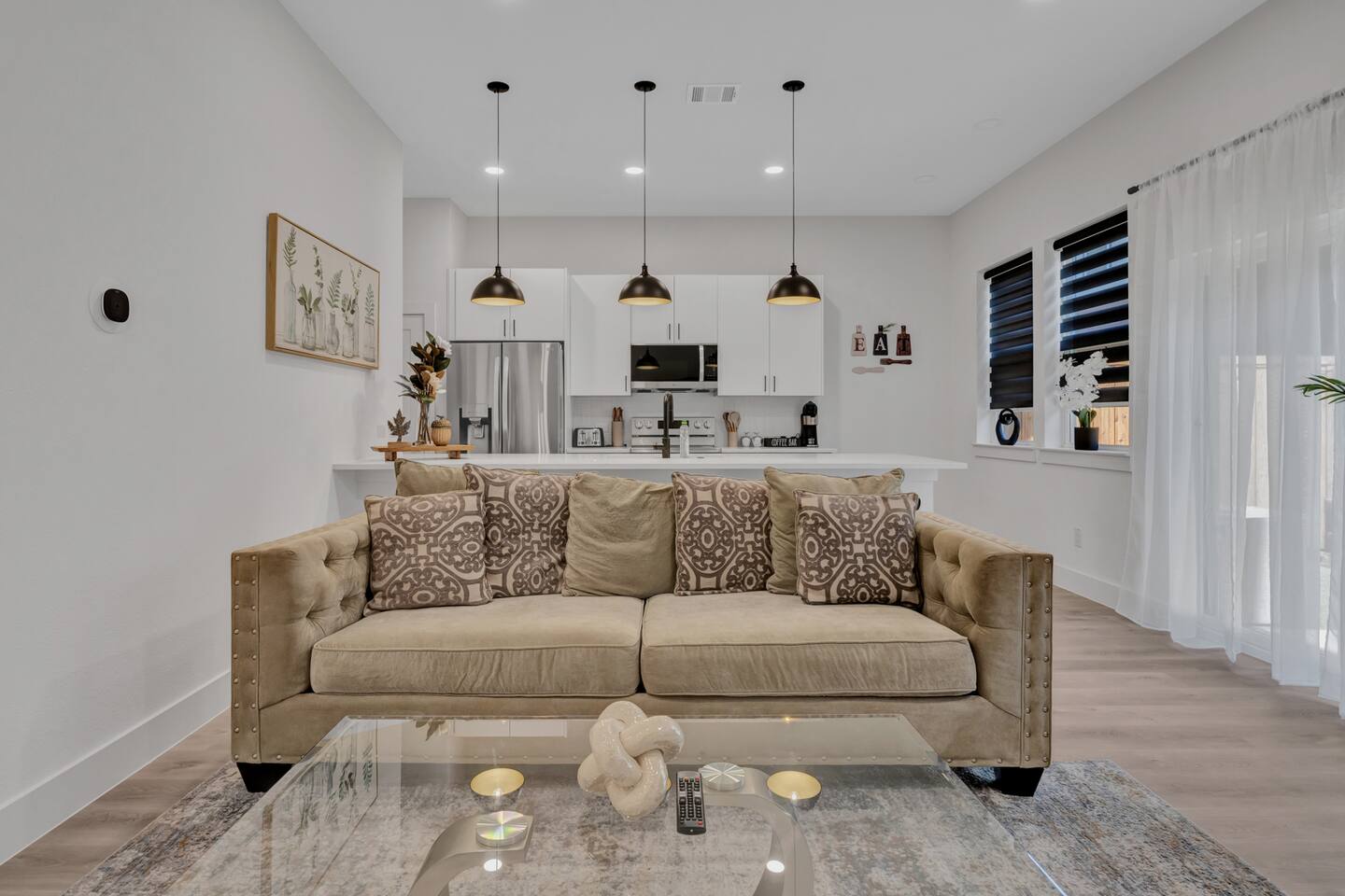 Make yourself at home in our cozy 3BR Dallas townhouse with rooftop terrace! Perfect for families, friends, and pets, this spacious retreat offers an open living area, fully equipped kitchen, and private patio. Relax in the primary suite or enjoy views from the rooftop. Just minutes from Love Field, Downtown, dining, and shops - your ideal home in Dallas.